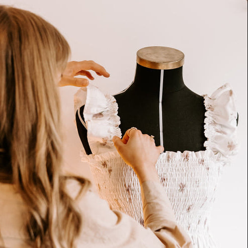 Jeg hedder Fie og det er mig der er designeren, konstruktøren, syersken og underviseren i atelieret. Jeg er uddannet beklædningsdesigner fra Fashion Design Akademiet i København og har derudover studeret haute couture i Paris.